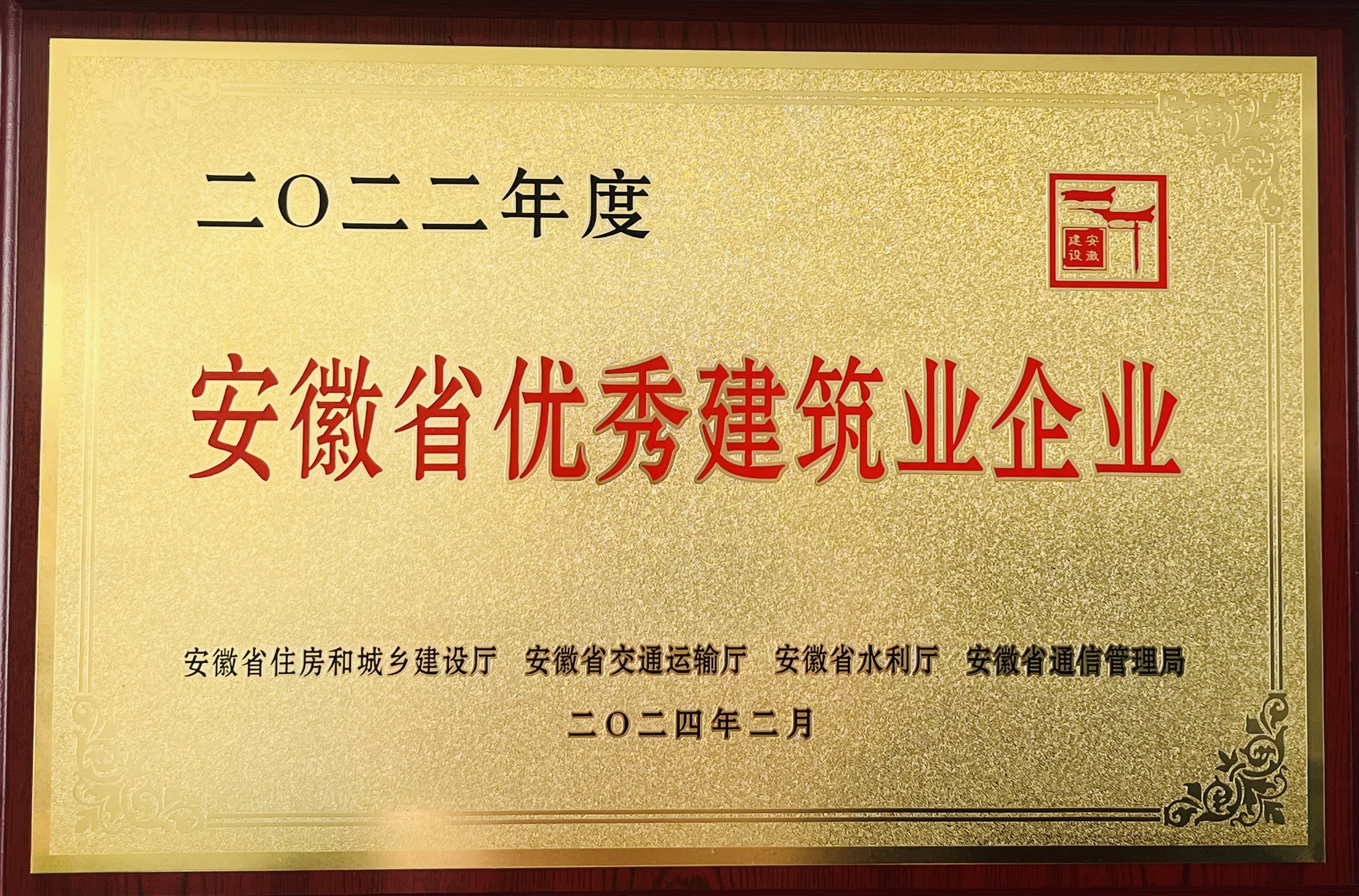 二〇二二年度安徽省优秀建筑业企业证书